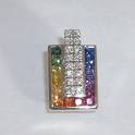 We have some Rainbow Sapphire pieces in the store. The top picture is of the pendant we have, the second picture is from the RS website - it shows how the pendant comes apart so that you can wear the diamonds on their own, the sapphires alone, or put it all together.